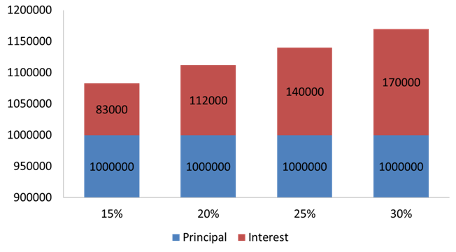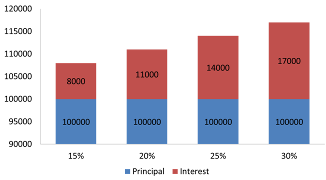 For example, a customer with a 30% interest rate on a loan (likely due to a weak credit profile) will pay more